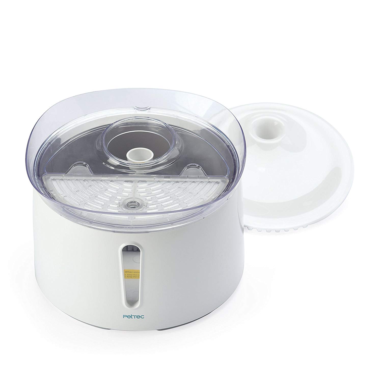 Der PetTec Pet Fountain Trinkbrunnen hat ein Wasserreservoire das relativ lange hält. Durch einen Schwimmer mit elektronische Anbindung kann er durch Veränderung der Farbe einer LED dem Katzenfreund mitteilen, wann das Wasser zur Neige geht. Zudem geht es ein transparentes Fenster durch welches man den aktuellen Wasserstand sehen kann. Das ist durchdacht und erleichtert den Betrieb.